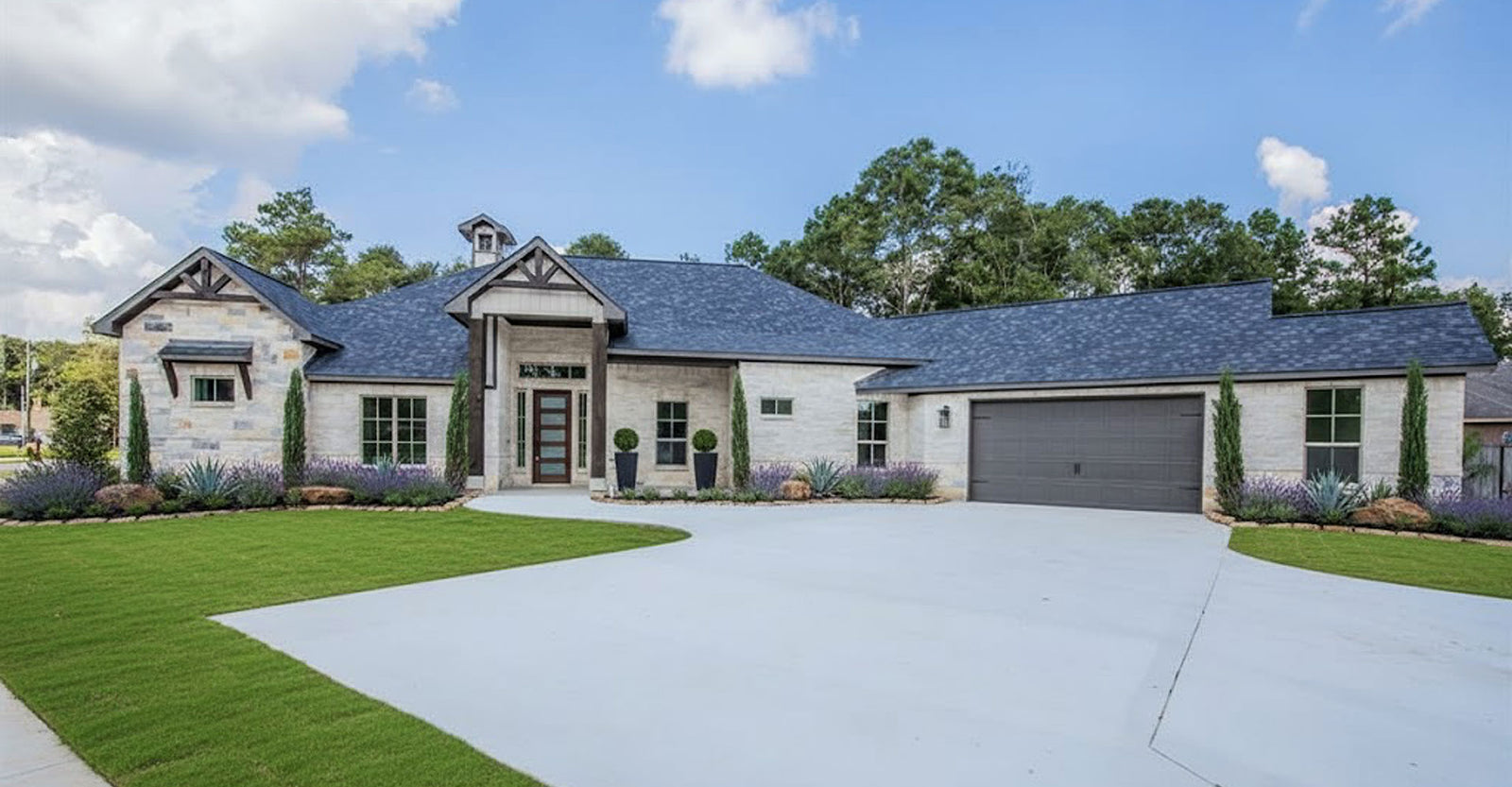 A STUNNING EXAMPLE OF MODERN TEXAS ARCHITECTURE READY TO BE BUILT ON YOUR LOT. THIS MID-PRICED, SINGLE-STORY HOME OFFERS EXCEPTIONAL CURB APPEAL WITH ITS CRISP WHITE STUCCO, ACCENTED STONE BASE, AND A CLASSIC TEXAS STAR MOTIF ABOVE THE ENTRY.