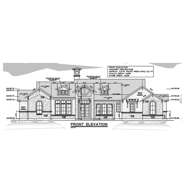 STUNNING ARCHITECTURAL DETAIL WITH STUCCO AND STONE ACCENTS.